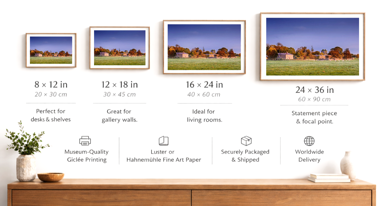 Professionally printed: All prints produced on premium paper with archival pigment inks.